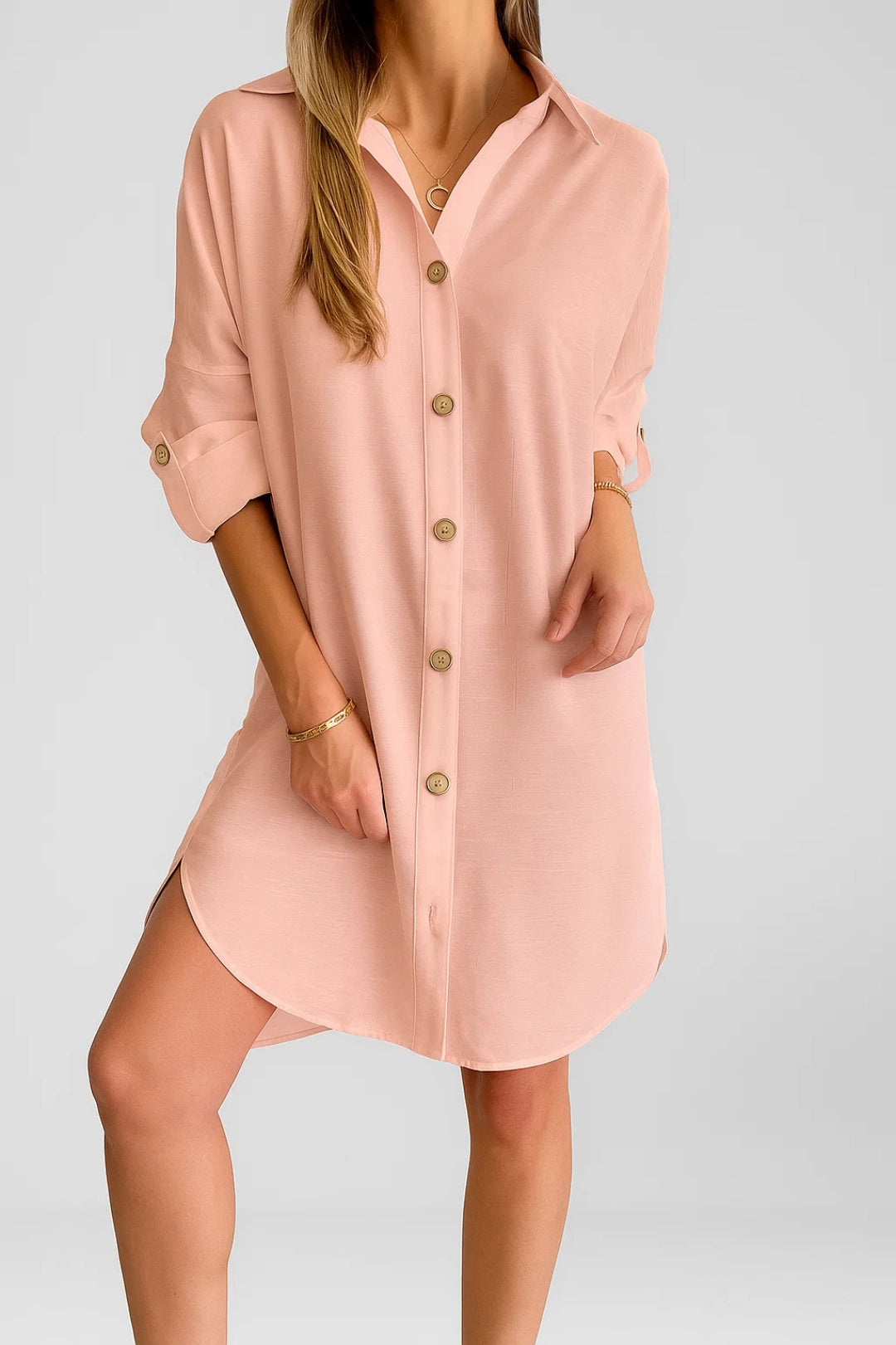 Lange overhemdjurk met knoopsluiting | Soepele pasvorm